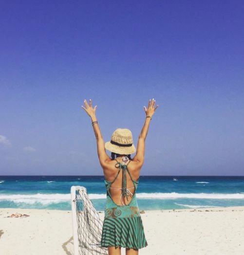 이미지 확대보기SNS 인스타그램에 올린 이 사진은 휴양지 칸쿤에서 찍은 것이다. 사진 속 조여정은 두 팔을 하늘로 올리고 선명하게 갈라진 등근육을 자랑하고 있다.
