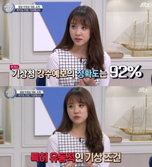 이어 “기상청 강수예보의 정확도는 92%인데 사람들이 느끼는 건 60% 수준”이라며 “여름철 공기의 흐름이 유동적이라 날씨가 안 맞는 경우가 많다”고 날씨예보에 대한 어려움을 털어놨다.