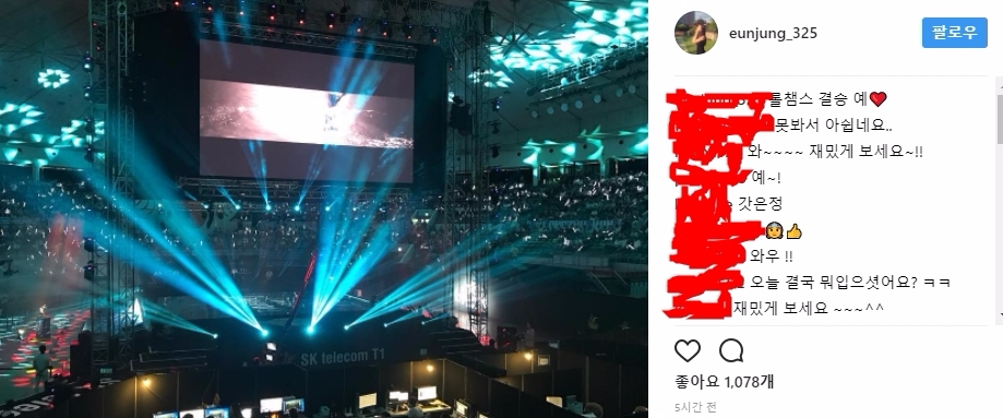 이날 조은정은 자신의 인스타그램에 "롤챔스 결승 예"라는 글과 함께 사진을 게재했다.