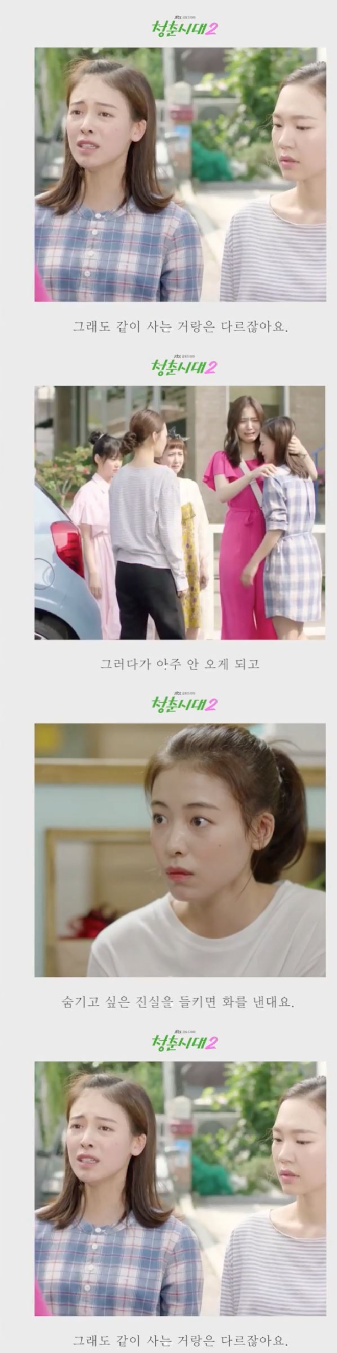 이어 JTBC 금토/금요/주말드라마 ‘청춘시대2’에서 공개한 두 번째 영상 속 명대사는 “사람은요. 숨기고 싶은 진실을 들키면 화를 낸대요.” 라고 벨에포크 식구들과 식사를 하던 중 유은재가 남긴 대사다.