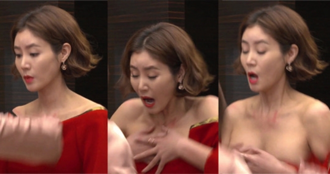 이미지 확대보기김성령은 지난 2015년 8월 방송된 MBC '여왕의 꽃'에서 가슴 라인이 드러나는 노출신을 선보였다. 극 중 갈등을 빚는 양정아가 자신과 똑같은 드레스를 입은 김성령이 못마땅해 옷을 찢으며 분노하는 장면이다.