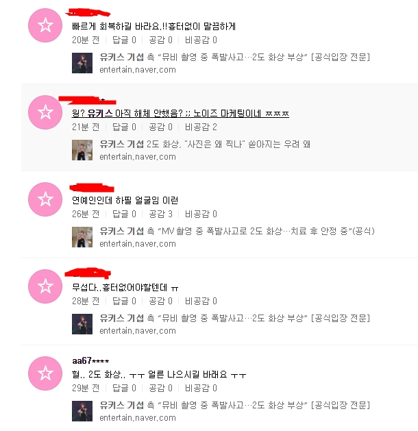 이에 팬들은 "얼굴에 상처 안남나요" "쾌차하세요" "흉터 없어야 할텐데"등의 반응을 보이고 있다.
