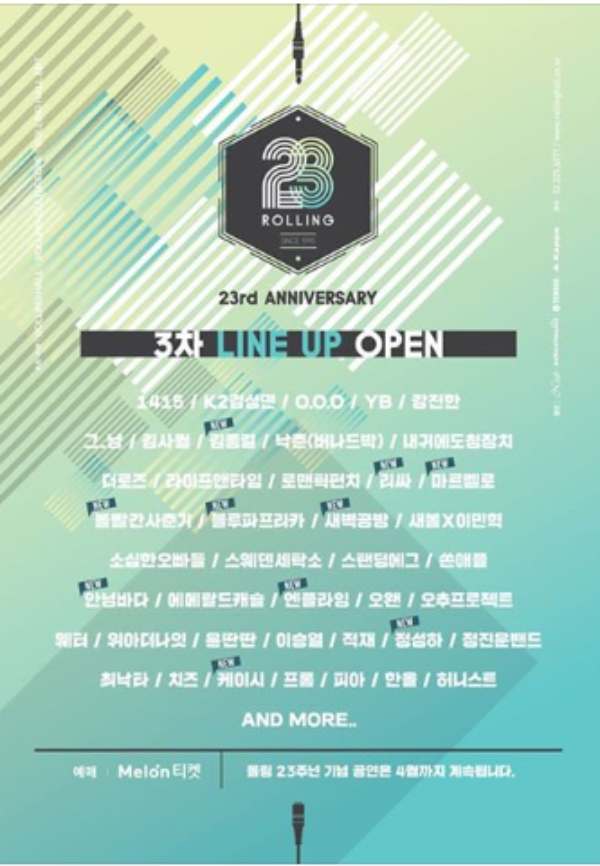 1차 라인업에는 피아, 로맨틱펀치, 내귀에도청장치, 치즈, 프롬, 에메랄드캐슬, K2 김성면, 스웨덴세탁소, 김사월, 낙준(버나드 박), 허니스트, 최낙타, 새봄x이민혁, 강전한, 그_냥, 1415, 더 로즈 등 총 17팀이 나선다.