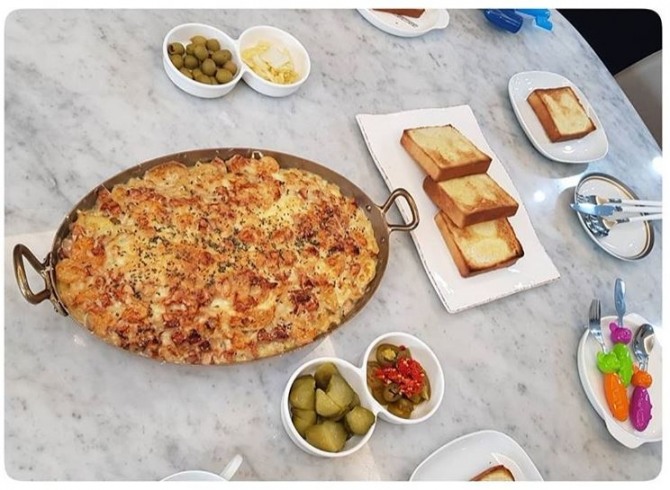 #감자 (영상보다 더 얇게가 좋아요 )_ #마카로니 (감자가 몇 개 없어서;;) 버섯_후추_소금_파마산치즈 _올리브오일_ 쉐킷쉐킷준비 팬에 올리브오일_버터_마늘_양파_후추_소금_#생크림 _햄_새우 등은 기호에 따라 넣고 보글보글 둘을 섞은 후 #파마산치즈 #모짜렐라치즈 뿌려주고 오븐이나 렌지에서 노릇노릇구워주면 완성”이다.