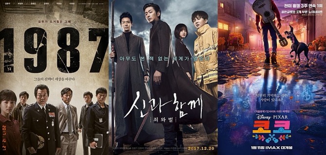 개봉 14일차에 접어든 드라마 장르의 영화 ‘1987 (1987:When the Day Comes, 2017 / 15세 관람가)’의 누적 관객수는 426만 9453명이며, 개봉 27일차에 접어든 액션, 드라마 장르의 영화 ‘강철비 (Steel Rain, 2017 / 15세 관람가)’ 436만 5311명이다.