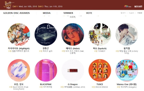 관심을 모은 가수들의 라인업도 공개됐다. 디지털 음원 부분 시상이 있는 10일에는 아이유, 윤종신, 워너원, 트와이스 등이 시상식에 참여한다. 워너원은 디지털 음원 후보와 함께 신인상 후보에도 올라 있다. 음반 부문 시상이 있는 11일에는 엑소, 방탄소년단, 세븐틴 등이 출격한다.