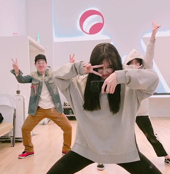 지난 10일 정은지는 자신의 SNS에 한 장의 사진을 게재했다. 사진 속 정은지는 연습실로 보이는 공간에서 동료들과 브이자를 그리며 해맑은 모습이다. 특히 스트레칭하는 듯 다리를 벌려 팬들의 눈길을 사로잡았다.