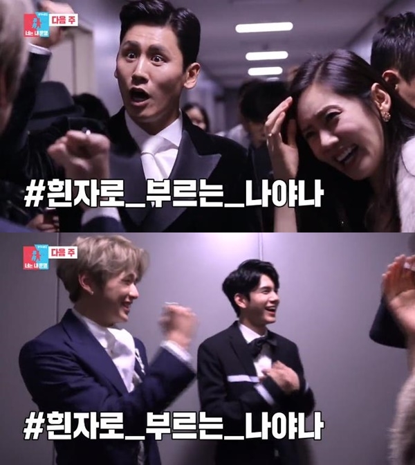 우효광과 추자현 부부가 대기실 복도에서 워너원을 만나는 모습도 그려진다. ‘나야 나’를 따라 부르는 우효광에 박수를 보내며 활짝 웃는 강다니엘을 확인할 수 있다.