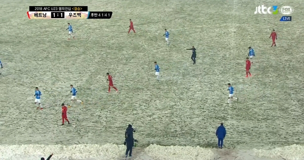 하지만 경기 전반 30분이 지나며 분위기는 조금씩 베트남 쪽으로 기울었다. 베트남은 우즈벡을 압박하며 공격 이어갔고 전반 40분 프리킥 기회를 얻었다. 베트남은 이 기회를 놓치지 않고 동점골을 넣어 승부는 원점으로 돌아갔다.