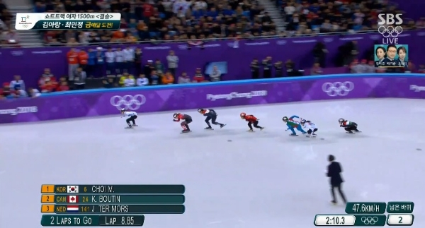2018 평창동계올림픽 쇼트트랙 여자 1500m 결승 경기 화면 캡처.이미지 확대보기