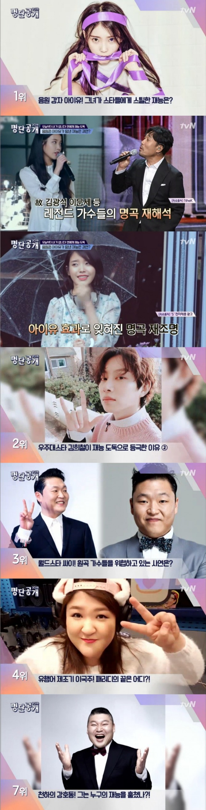 연예계 재능 도둑 스타 1위에는 가수 아이유가 차지했다. 아이유는 발표 하는 곡마다 음원 차트 상위권을 점령하는 연예계 대표 음원강자이면서 가요계 명곡을 리메이크해 히트시켰다.
