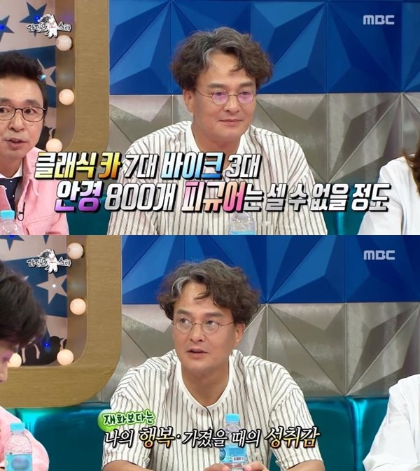 클래식카 7대, 바이크 3대, 안경 800개, 셀 수 없이 많은 피규어를 자랑했다. MC 김구라가 “작품을 많이 하는 것도 아닌데…”라며 어떻게 모았는지 묻자 “여건이 될 때 하나씩 모으는 것뿐”이라고 말했다.