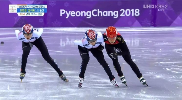 이미지 확대보기2018 평창동계올림픽 쇼트트랙 여자 1000m 결승에서 김아랑 선수가 아쉽게 탈락했다. 한 조로 뛴 최민정과 심석희는 결승에 동반 진출했다.