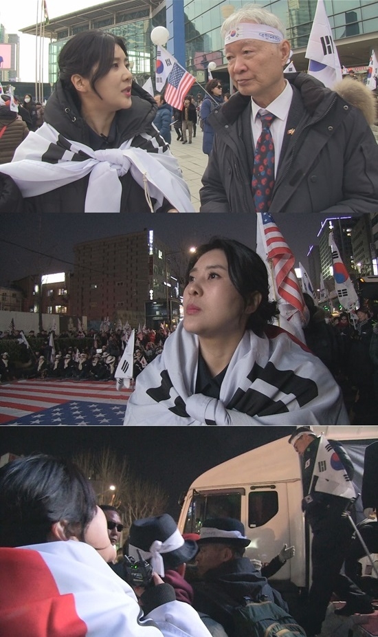 강유미는 1일 방송되는 SBS '김어준의 블랙하우스'의 '흑터뷰' 코너에서 3·1절을 맞아 태극기가 휘날리는 거리로 나선다. 이 장면은 지난 2월 24일 광화문 태극기 집회 현장에 잠입한 강유미의 모습을 담은 것이다.