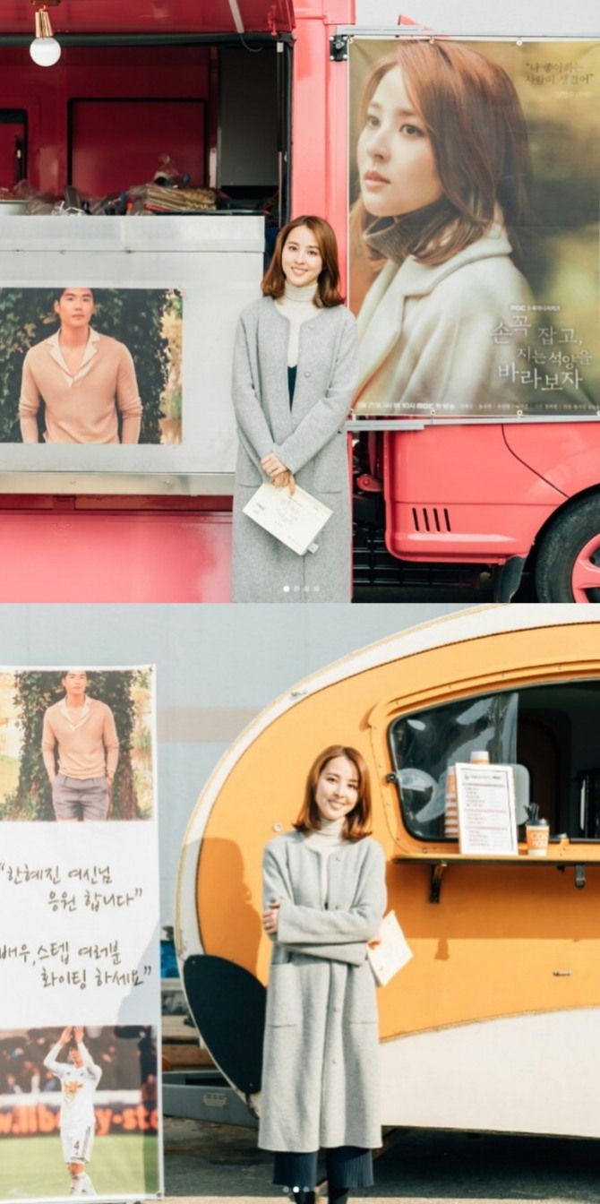 이미지 확대보기한혜진은 지난 10일 자신과 남편 기성용과의 공동 인스타그램을 통해 간식차 응원 사진과 함께 '감동의 커피차 분식차 서프라이즈. 고마워 기떵용 최고'라는 문구를 게재해 남편의 사랑에 화답했다.