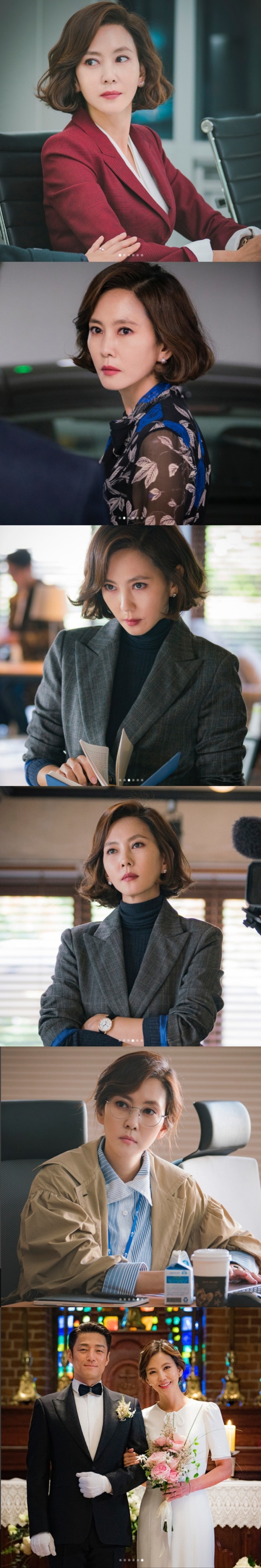 이미지 확대보기JTBC 금토드라마 '미스티'에서 앵커 고혜란 역으로 활약하는 배우 김남주가 슈트, 캐주얼룩, 웨딩드레스까지 다양한 패션을 소화한 스틸 컷이 공개됐다. 사진=더퀸 제공