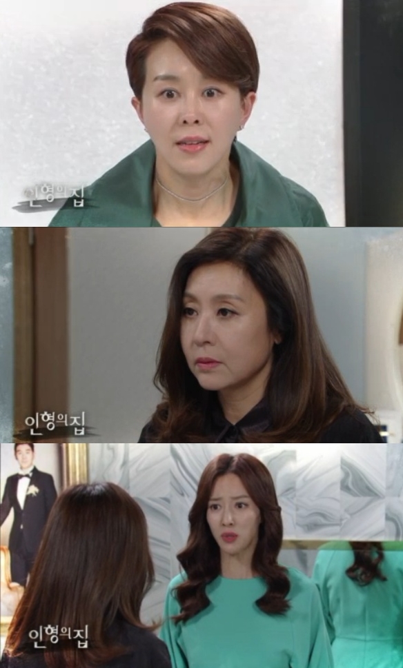 이미지 확대보기9일 오후 방송되는 KBS2 일일드라마 '인형의 집'(연출 김상휘, 극본 김예나·이정대) 31회에서는 김효정(유서진 분)이 금영숙(최명길 분)과 은경혜(정체 홍세연, 왕빛나 분)가 친모녀 사이임을 알고 경악하는 반전이 그려진다.
