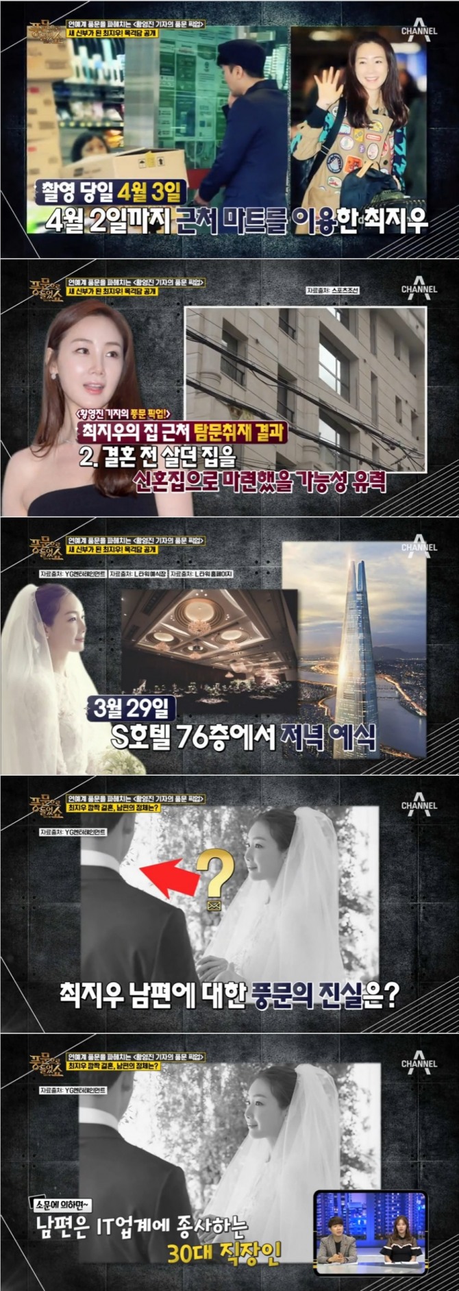 이미지 확대보기9일 밤 방송된 종합편성채널 채널A 풍문으로 들었쇼(이하 풍문쇼)에서는 황영진 기자가 한류스타 최지우의 신혼집을 탐방하는 모습이 전파를 탔다.