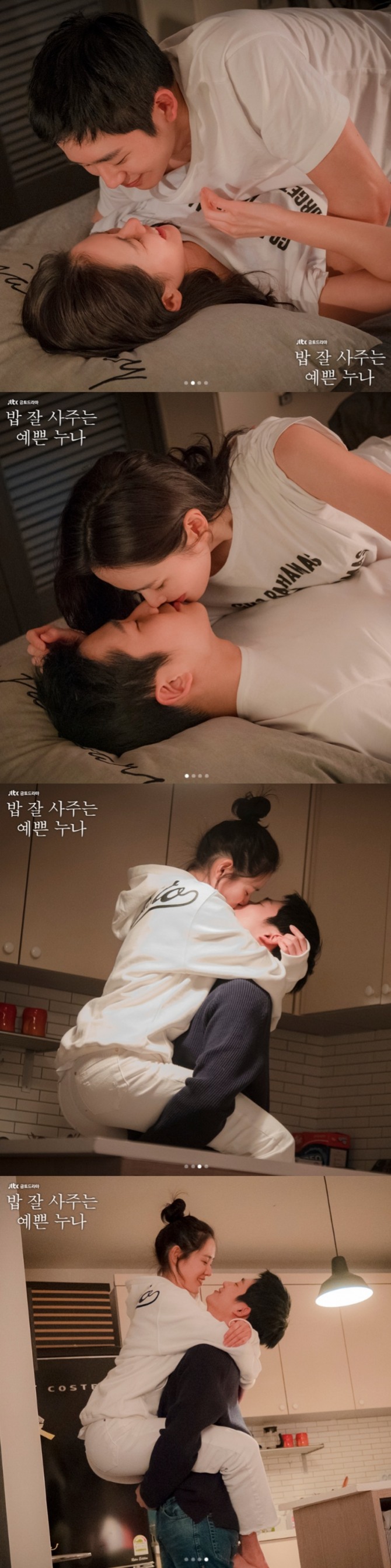 이미지 확대보기JTBC 금토드라마 '밥 잘 사주는 예쁜 누나' 제작진은 최근 공식 인스타그램을 통해 "세상 사람들.. 진아X준희 좀 보세요..오늘만은 어른들의 격정 멜로...?"라는 글과 함께 극중 윤진아 역의 손예진과 서준희 역의 정해인이 진한 스킨 십과 키스를 나누는 스틸 컷을 공개해 설렘을 선사했다.