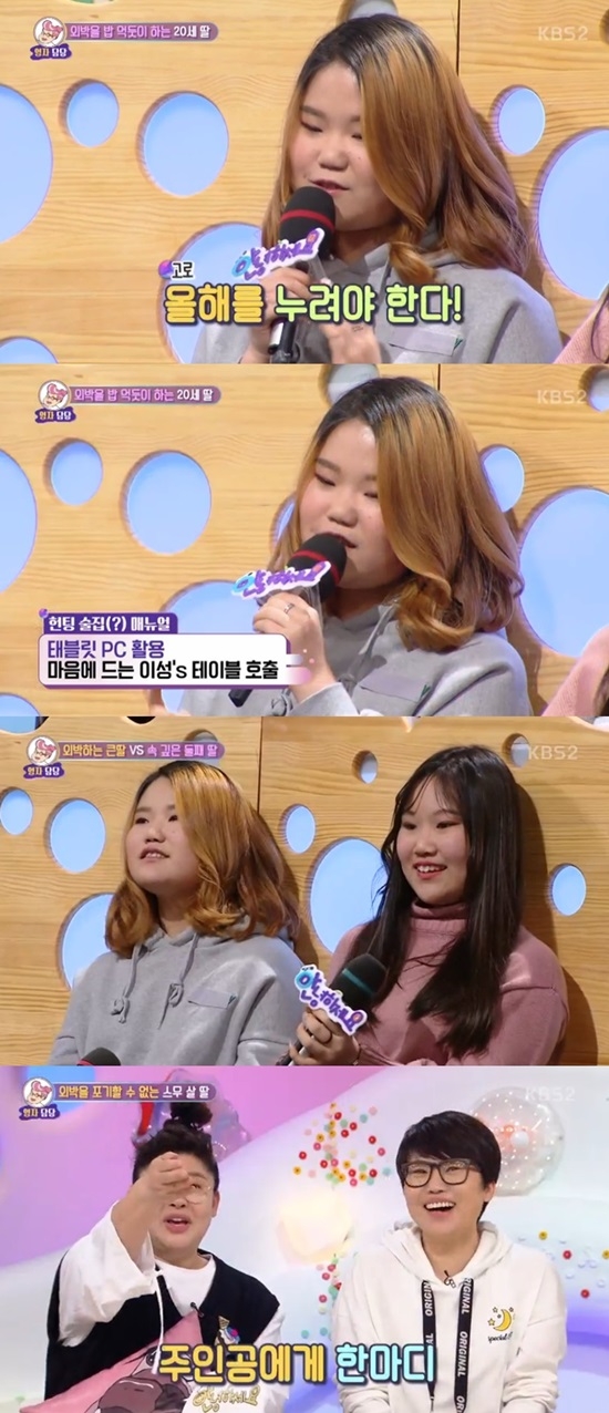이미지 확대보기23일 방송된 KBS 2TV '대국민토크쇼-안녕하세요'(이하 '안녕하세요')에는 일주일에 4번 이상 외박하는 딸이 고민이라는 40대 엄마가 출연했다.