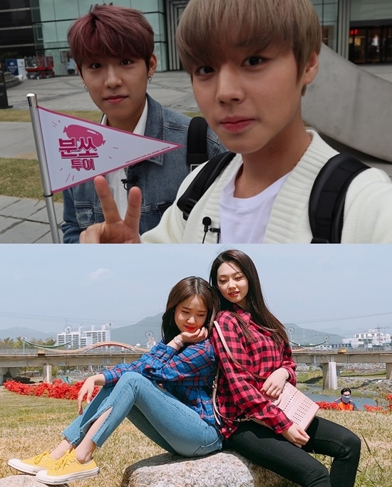 이미지 확대보기27일 방송 예정인 KBS 2TV '배틀트립'에는 2018년 꽃 같은 스무 살을 맞이한 구구단 미나-위키미키 유정, 워너원 박우진-박지훈이 '스무 살 첫 여행' 편에 출격한다. 구구단 미나-위키미키 유정은 '유봄나봄 투어'란 투어명으로 순천과 광양으로, 워너원 박지훈-박우진은 '분쏘 투어'란 이름으로 진주와 하동으로 떠날 예정. '스무 살 첫 여행'특집인 만큼 두 팀 모두 여행 내내 설렘과 풋풋함이 흘러 넘쳤다고 해 금주 방송에 이목을 집중시킨다.