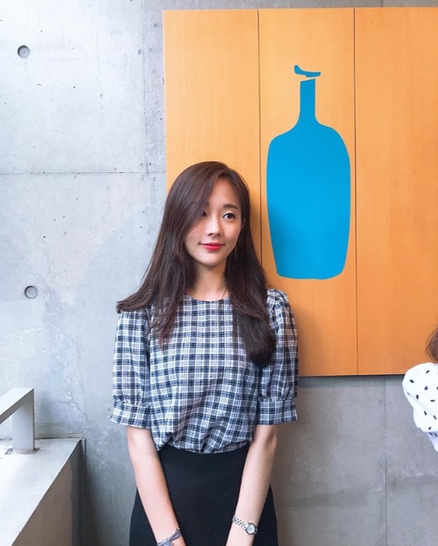 공개된 사진 속 오영주는 체크무늬 반팔 셔츠에 긴 생머리의 청순한 미모로 시선을 사로잡았다.