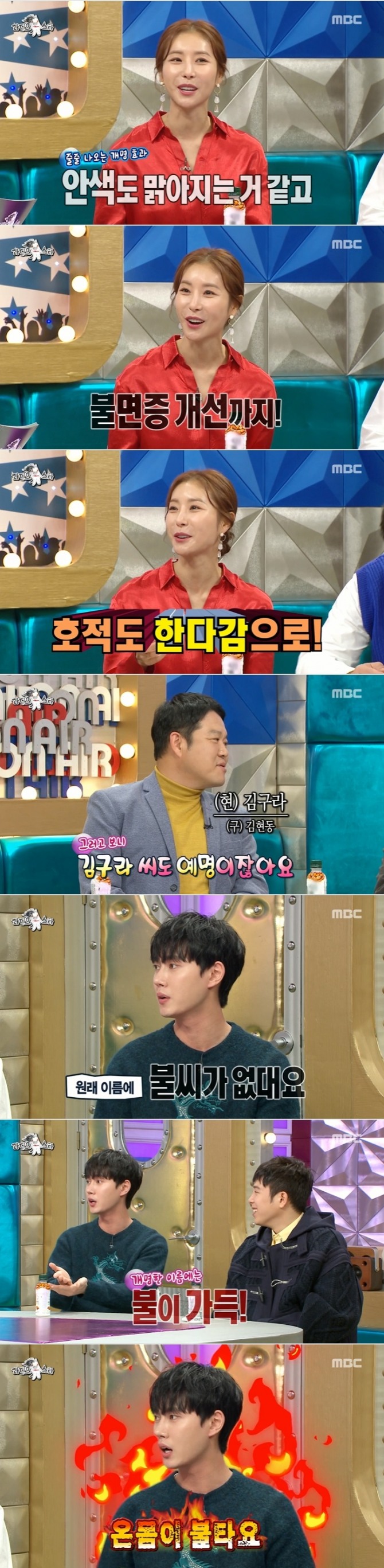 "개명후 신진대사가 활발해졌느냐?"는 질문에 이태리는 "원래 이름에 불이 없다. 물만 가득해 불씨가 자꾸 꺼진다고 하더라. 불을 태워줘야 한다고 해서 지금 이름에 불만 다 갖다 부어 온 몸이 불 탄다"며 너스레를 떨었다.
