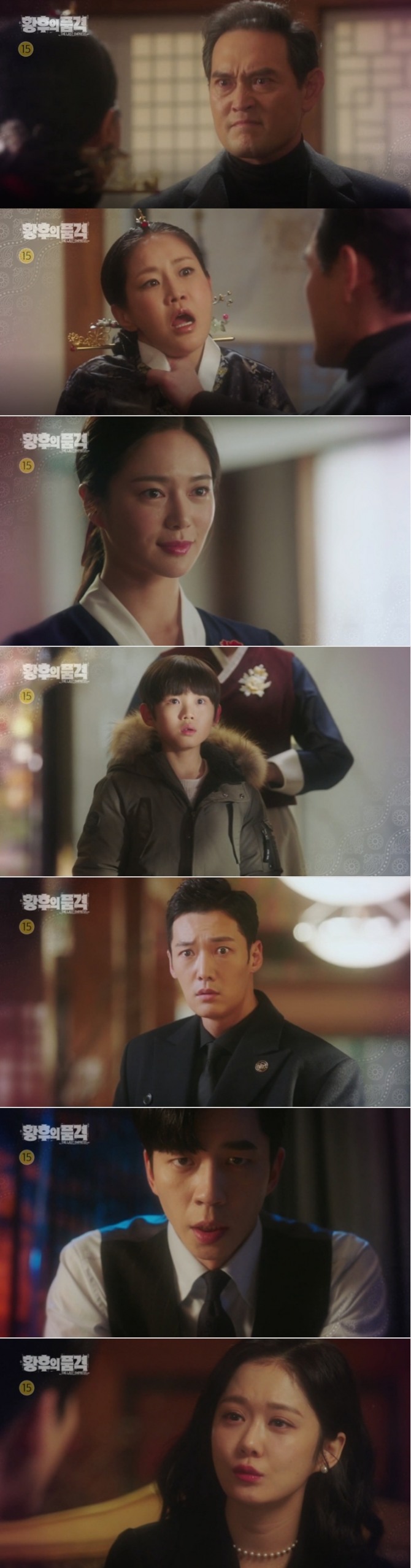 이미지 확대보기23일 오후 방송되는 SBS 수목드라마 '황후의 품격'(극본 김순옥, 연출 주동민) 35~36회에서는 태후 강씨(신은경 분)와 모종의 거래를 한 민유라(이엘리야 분)가 재입궁, 자신의 친아들인 나동식(오한결 분)을 앞세워 황제 이혁(신성록 분)에게 천우빈(최진혁)의 정체가 나왕식임을 폭로하려 하는 충격 반전이 그려진다.