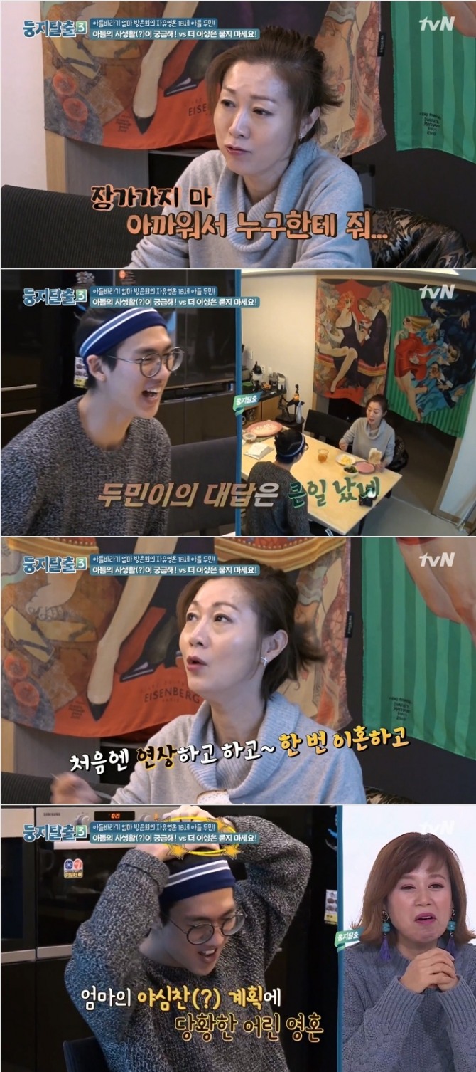 이미지 확대보기29일 방송된 tvN '둥지탈출3'에서는 배우 방은희가 아들 김두민과 출연해 사춘기 아들과 갱년기 엄마의 일상을 공개했다.