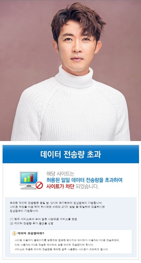 한편, 안재욱의 음주운전 소식이 알려진 낮 12시 현재 안재욱이 설립한 제이블엔터테인먼트는 접속자 폭주로 데이터 전송량 초과로 사이트가 차단된 상태다.