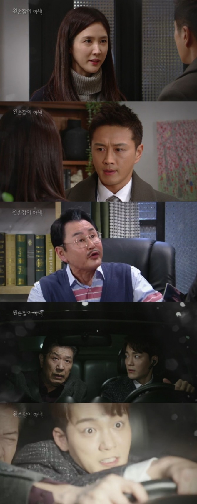 산하네 집에 5년 전 성형집도 증거 USB를 남긴 손중기가 교통사고로 사망하는 것인지 궁금증을 자아내는 '왼손잡이 아내'는 평일 오후 7시 50분에 방송된다. 100부작.