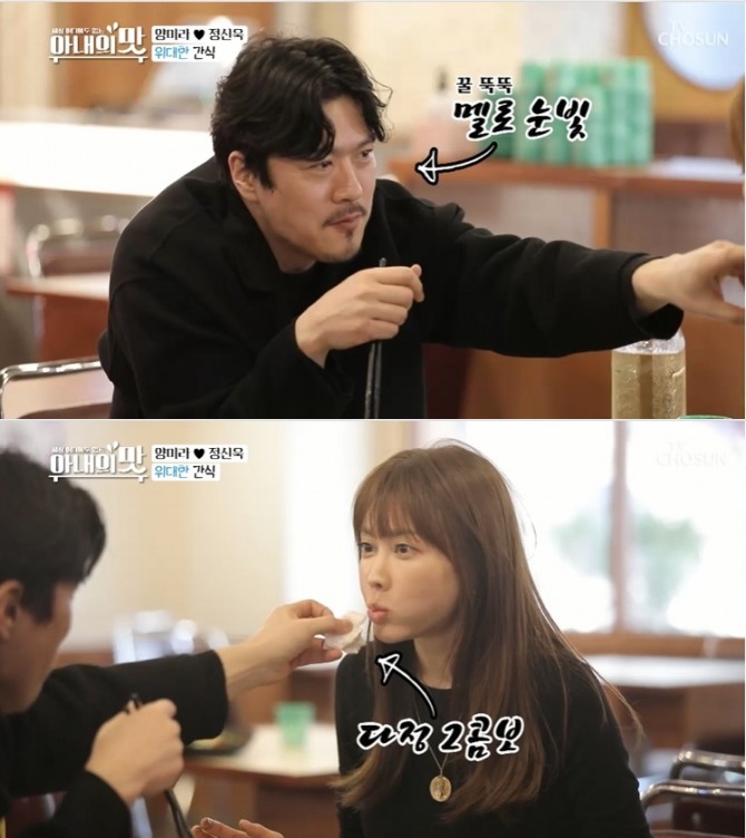 이미지 확대보기12일 오후 방송된 TV조선 화요 예능 '아내의 맛'에서는 양미라-정신욱 부부의 달달한 일상이 공개됐다.