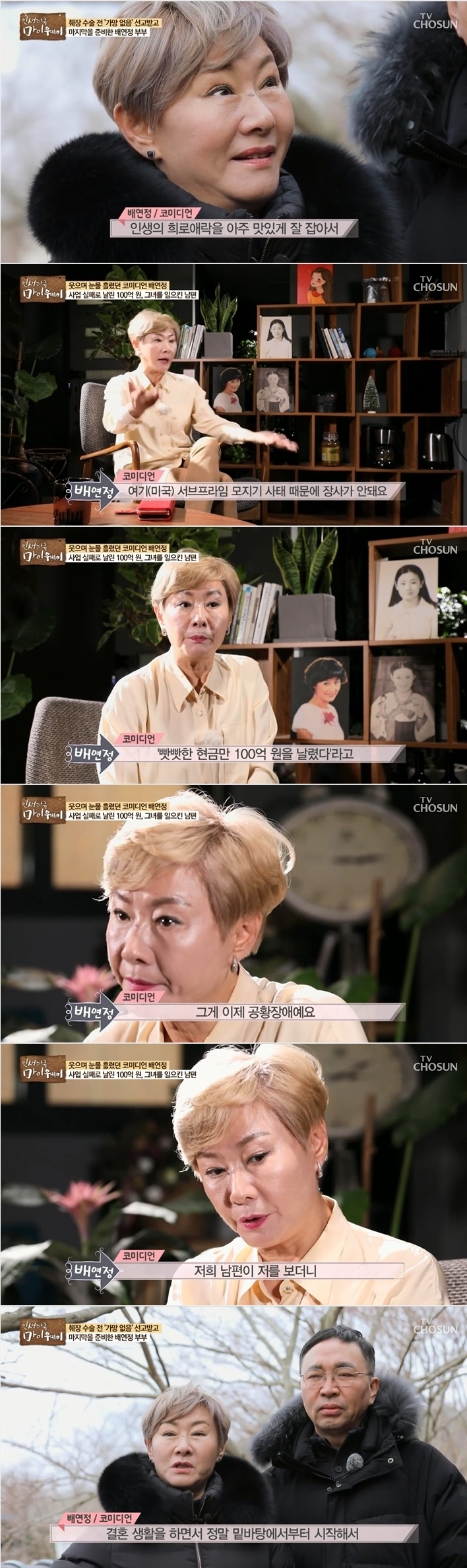 앞서 지난 8일 방송된 TV조선 '인생다큐 마이웨이'에 출연한 배연정은 "인생사 희노애락을 맛있게 차려놓은 밥상처럼 잘 먹었다"며 아내 바라기 남편과 두 번 울었다고 밝혔다.