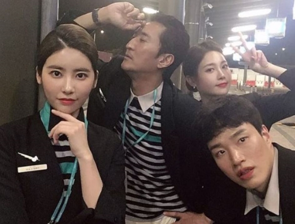 이미지 확대보기출연자인 신현준, 기희현, 김기리, 유라는 승무원 복장을 하고 다함께 포즈를 취하며 사진을 찍었다.