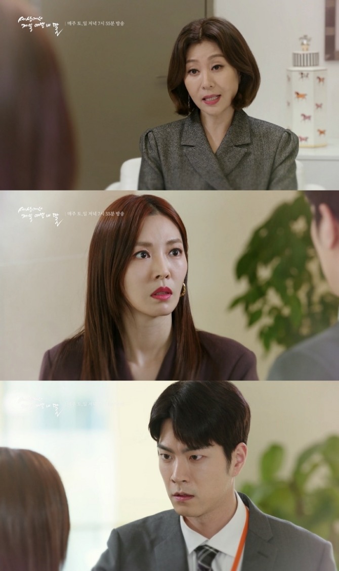 생모 전인숙을 피해 사표를 쓴 강미리와, 재혼한 전인숙의 조카 한태주가 인숙의 친딸 강미리에게 필이 꽂히는 엇갈린 운명의 향방에 관심이 쏠리는 '세상에서 제일 예쁜 내 딸'은 매주 토, 일요일 오후 7시 55분에 방송된다.