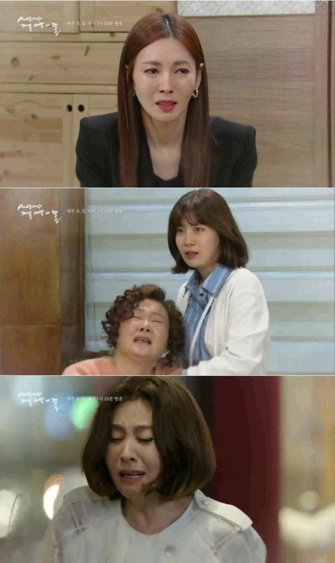 이미지 확대보기5일 오후 방송되는 KBS2TV 주말드라마 '세상에서 제일 예쁜 내 딸'(극본 조정선, 연출 김종창) 27~28회에서는 전인숙(최명길 분)이 강미리(김소연 분) 부장이 바로 어린 시절 박선자(김해숙 분) 집에 버렸던 친딸임을 알고 오열하는 반전이 그려진다.