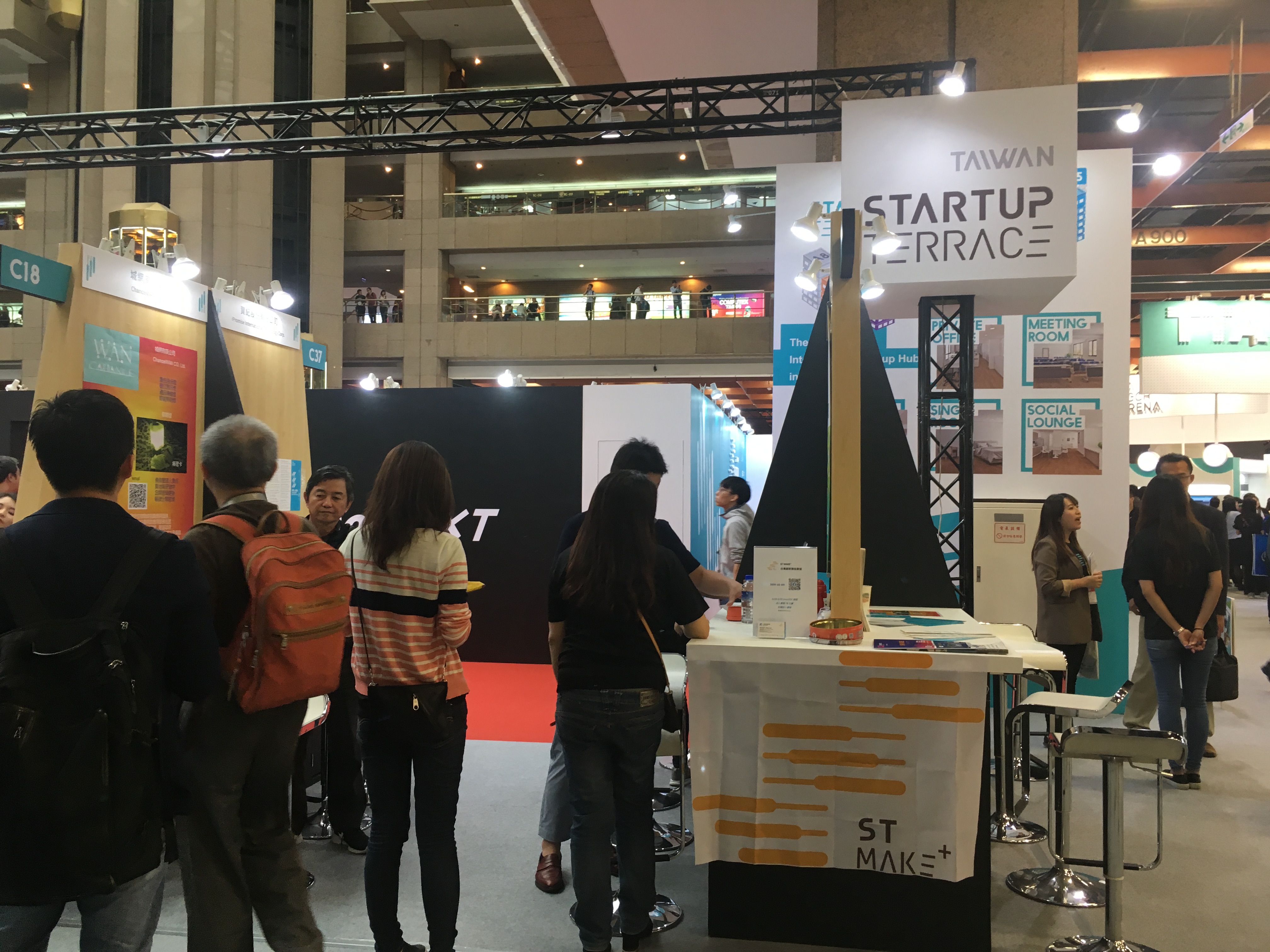 - 2019년 전시회에는 세계 각국의 국가관 외에도 대만 주요 창업 클러스터인 ‘타이완 스타트업 테라스’, ‘타이완 테크 아레나’가 입주 기업들로 구성한 대형 테마관을 개설했고, 지자체별(타이베이시, 신베이시, 타오위앤시, 타이난)로도 지원 중인 스타트업들로 팀을 꾸려 참가
