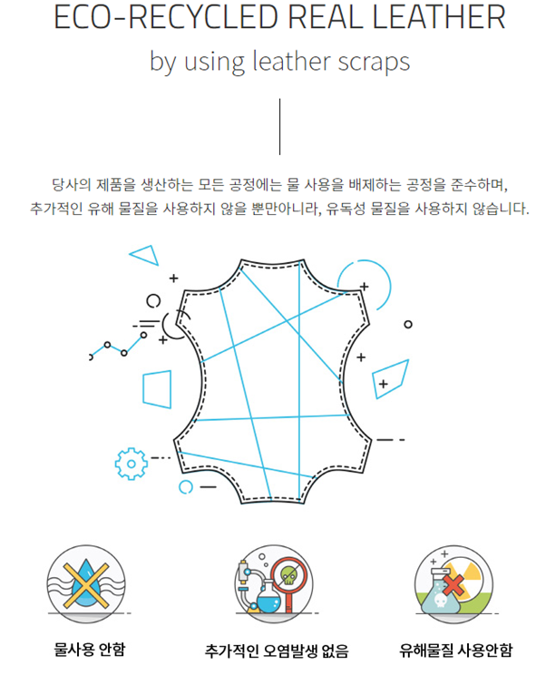 우리나라에서는 가죽제품을 만들기 위해 대부분 남미나 호주에서 가죽을 수입해 옵니다. 그러나 가방이나 옷을 만들고 남는 자투리 가죽 등 폐기물만 한 해 60만톤(환경부 공식 폐기물 통계 연간 14만톤)이 나옵니다. 이 가죽들을 폐기하는 것도 큰 문제가 아닐 수 없습니다. 이 쓰레기를 활용하여 만든 제품을 다시 해외로 수출한다면 정말 멋진 일 아닐까요?