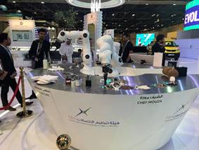 - 특히, UAE 통신규제청(TRA, Telecommunications Regulatory Authority)은 미래 카페에 사용될 로봇 ‘Chef Mouza’를 설치하여 로봇이 직접 음료와 디저트를 현장에서 제조하는 퍼포먼스를 선보여 참관객의 눈길을 끌었음.