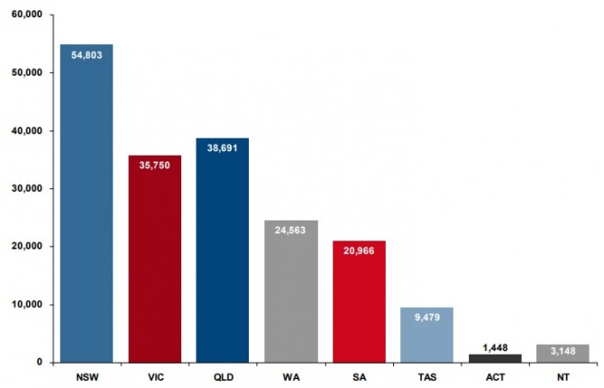 호주 각 주(State)별 호텔 산업 종사자 수