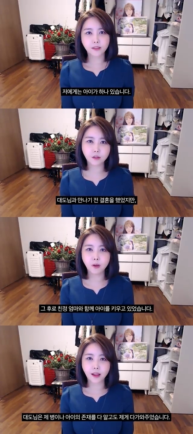 저에게는 아이가 하나 있습니다. 대도님과 만나기 전 결혼을 했었지만, 이별의 아픔을 겪었습니다. 그 후로 친정 엄마와 함께 아이를 키우고 있었습니다.