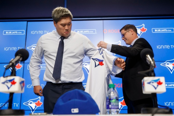 이미지 확대보기2019시즌 메이저리그 평균자책점 1위 류현진(33)을 영입한 토론토 젊은 선수들이 흥분을 감추지 못하고 있다.