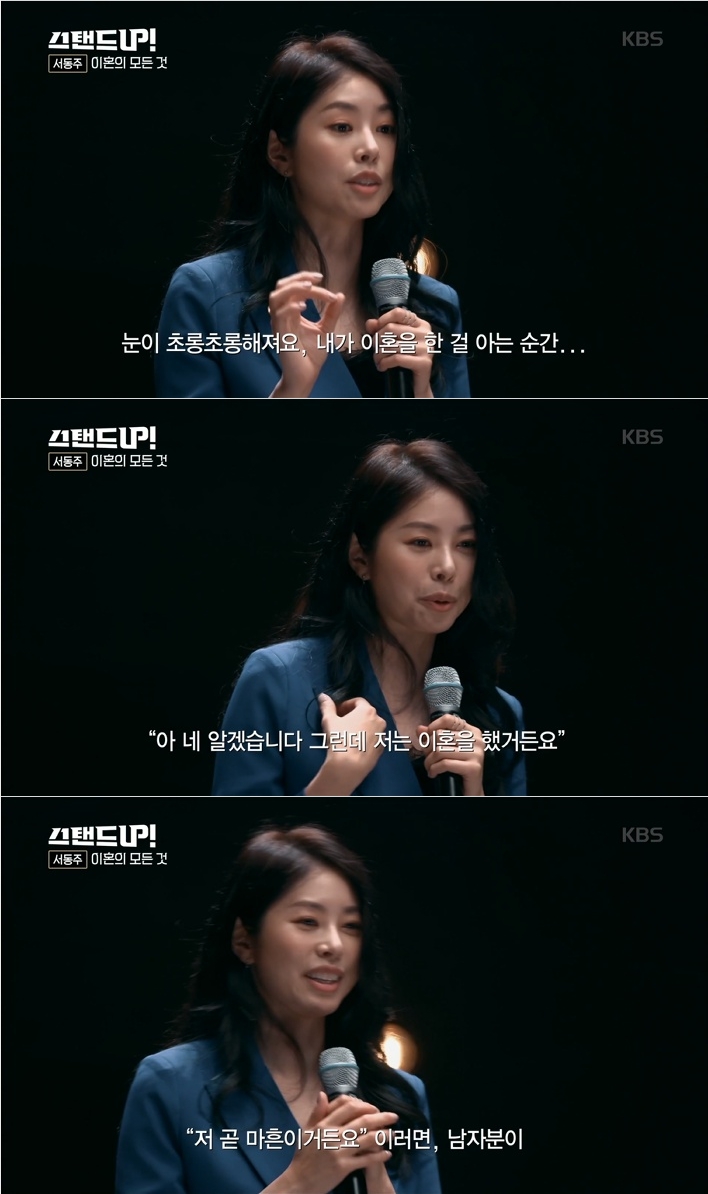이미지 확대보기28일 방송된 KBS2TV 박나래 '스탠드 업'(STAND UP) 첫회에서는 서동주 변호사가 출연, '이혼의 모든 것'을 주제로 진솔한 개인사를 털어 놓았다.