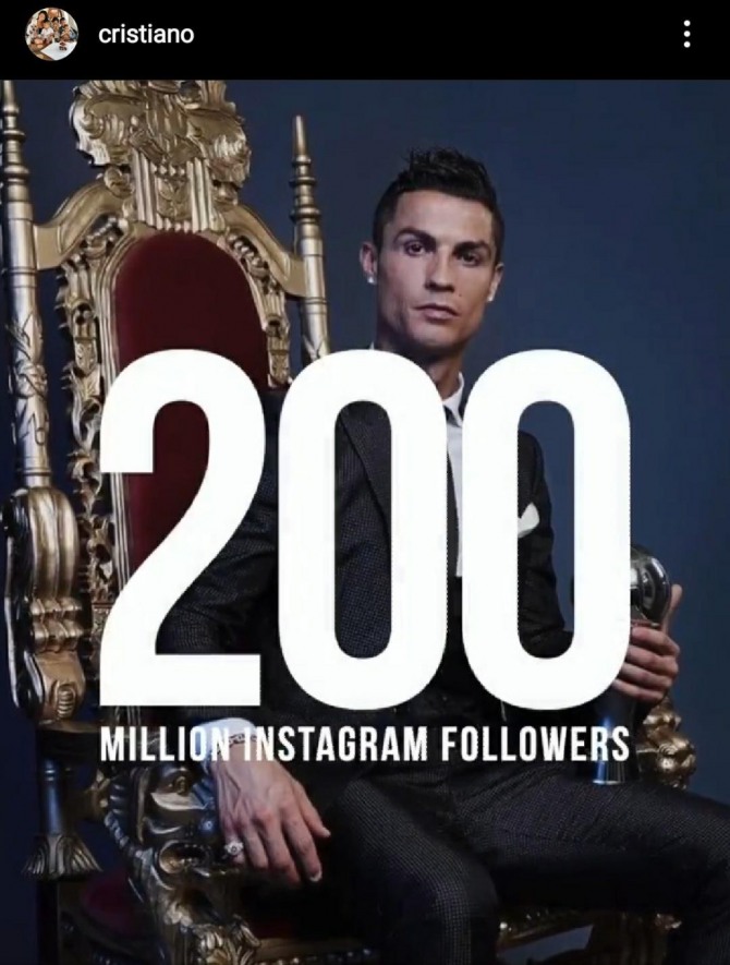 야후스포츠 등 외신은 호날두가 인스타그램 팔로워 2억명을 넘어선 최초의 인물이 됐다고 전했다.