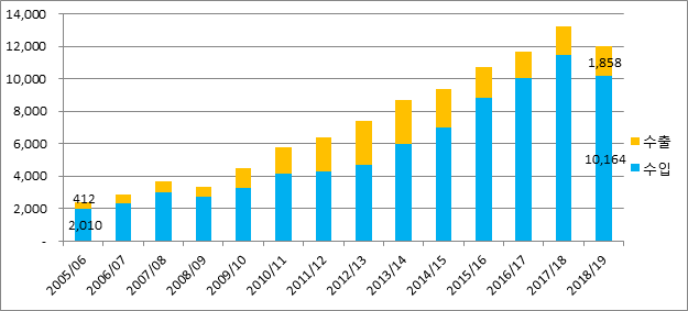 | 구분 | 품목 수 | 수입액(2016/17 회계연도 기준) | ||