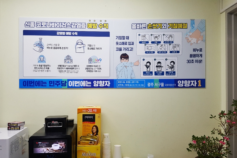 아울러 방문객에게는 신종 코로나 사태가 종료될 때까지 당분간 선거사무소 방문을 자제하도록 안내하고 있다.