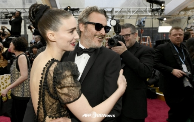 이미지 확대보기영화 ‘조커’(19)로 각종 영화상을 휩쓸면서 제92회 아카데미상에서도 남우주연상을 받은 호아킨 피닉스가 이번에 어머니, 누나와 함께 ‘그녀(her·2013)’공연을 계기로 2016년부터 교제하고 작년에 약혼한 루니 마라를 동반하고 레드카펫을 밟았다.