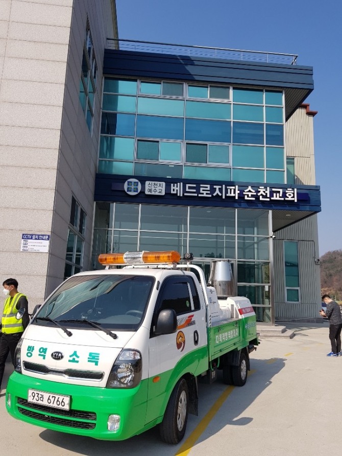 전남 순천시는 최근 대구·경북지역 코로나19 확진자의 급속한 확산으로 지역주민들의 불안감이 가중되고 있어 순천시 관내 교회 내·외부 소독을 실시하고, 순천 신천지교회 예배당 건물에 대해 지난 22일 ‘감염병의 예방 및 관리에 관한 법률’ 제49조(감염병의 예방 조치)에 의거 사태가 진정될 때까지 폐쇄 조치를 취했다고 24일 밝혔다.