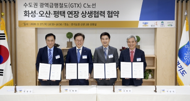 협약은 ▲GTX C노선 화성 오산 평택 연장에 적극 협력하고, ▲경기도는 중앙부처와 협의하고 오산 화성 평택시는 기초자치단체 차원에서 지원 협력하며, ▲실무협의회를 구성해 행정지원 등 제반사항을 협의한다는 내용이다.