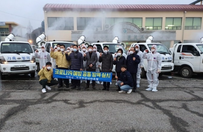 무안군(군수 김 산)과 목포무안신안축협(축협장 문만식)은 지난 1일 ‘코로나19’ 예방을 위해 공동방역을 실시하며 총력 대응에 나섰다.